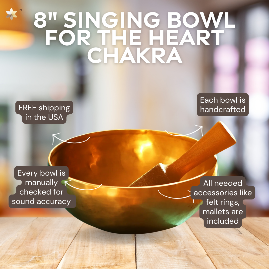 Each singing bowl is a unique work of art, crafted by skilled artisans who have honed their craft over generations. The bowl is made from high-quality brass, giving it a rich, resonant sound that will fill your heart and home with warmth and tranquility.
